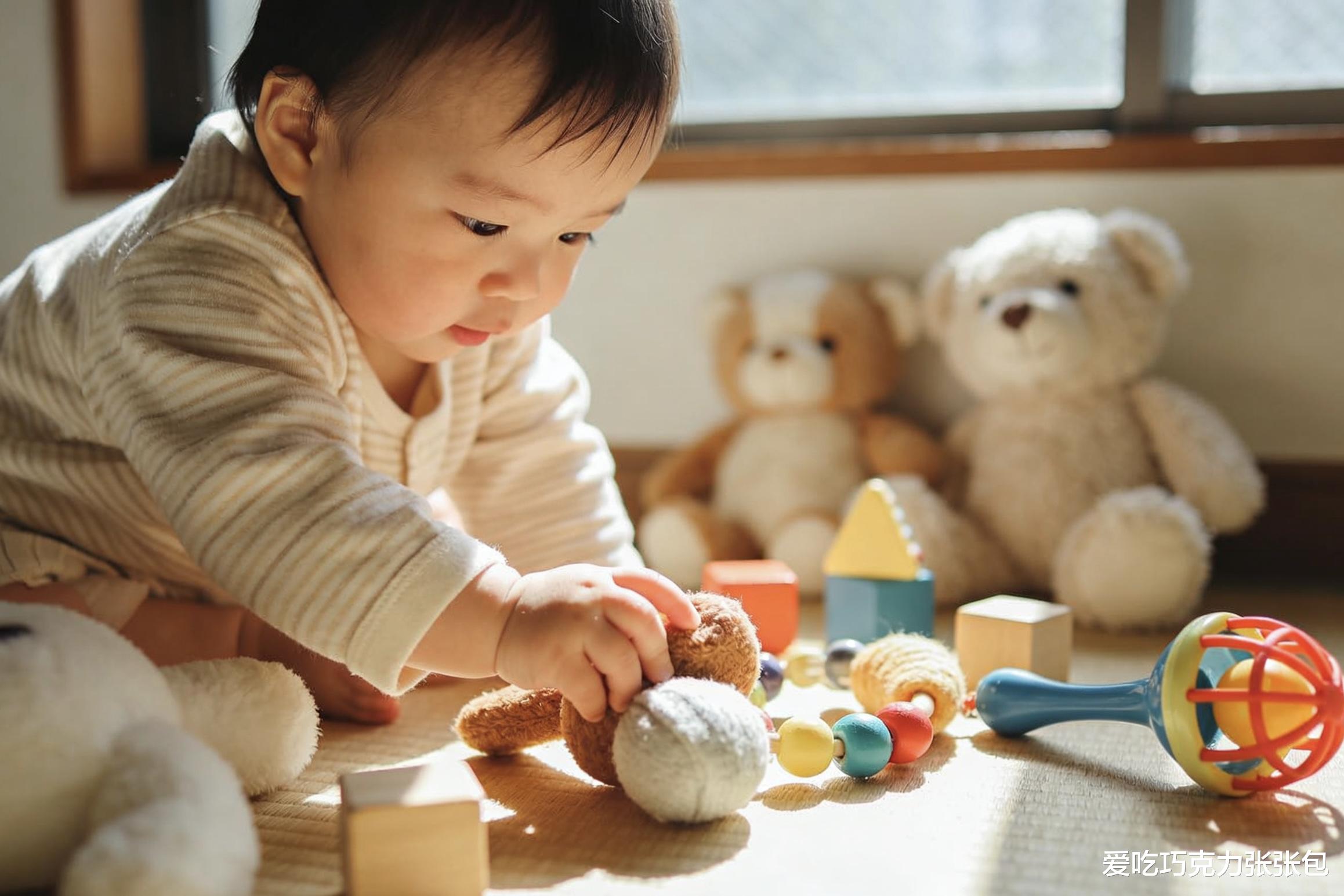 这个阶段的宝宝,认知完全依靠身体的感知和动作。他们会用小手抓握玩具,用嘴巴啃咬物品,通过触摸、听觉、视觉来认识周围的一切。家长可以多提供不同材质的玩具,比如毛绒玩偶、积木、摇铃,让宝宝在抓、握、摇的过程中,建立起“动作和结果”的联系。比如摇响铃铛时,宝宝会明白“自己的动作能带来声音”,这种简单的因果认知,是智力发展的第一步。