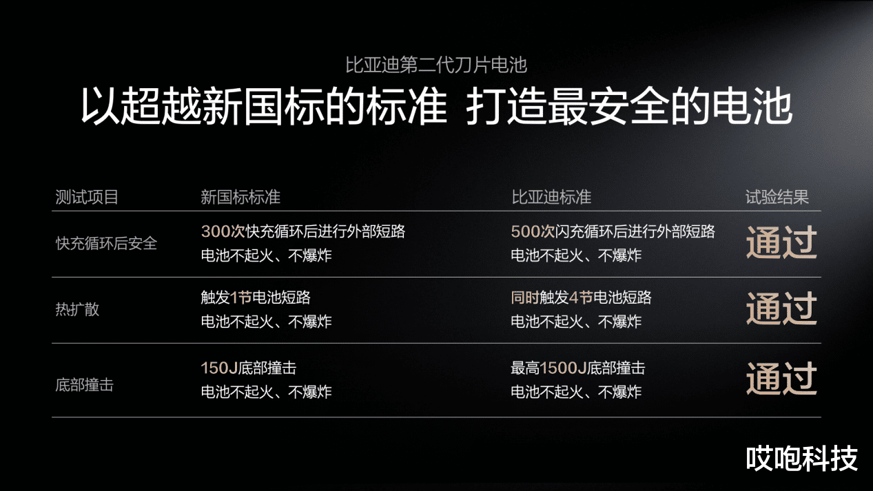 此外,在热扩散测试中,比亚迪主动触发4节电池短路(新国标仅要求触发1节),周围电芯温度仍保持稳定;在底部撞击测试中,在新国标的标准基础上,成功挑战10倍新国标撞击能量的底部撞击试验,电池不起火、不爆炸。这一系列测试,都在反复验证一个结论:第二代刀片电池在快充模式下,安全性不打折扣。