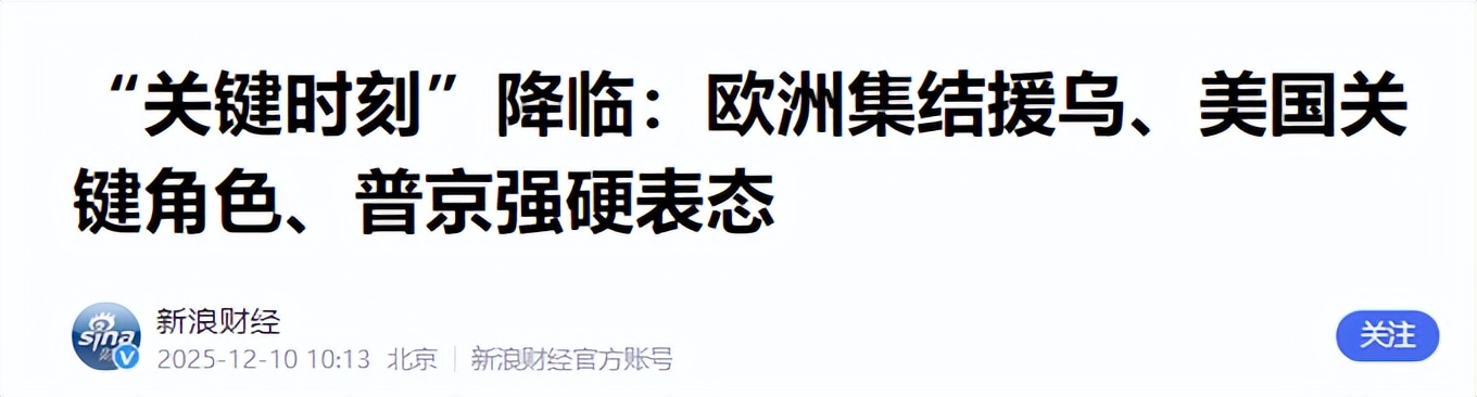 新浪财经——2025年12月10日——“关键时刻”降临:欧洲集结援乌、美国关键角色、普京强硬表态