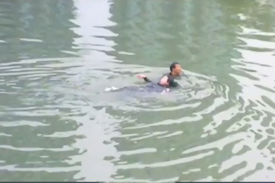 大爷这天正在河边散步,突然耳边传来呼救的声音,放眼望去,只见一名女子拼命的在河里挣扎,湍急的河流让她无法呼吸。人命关天,大爷顾不了那么多,直接跳水里救人。