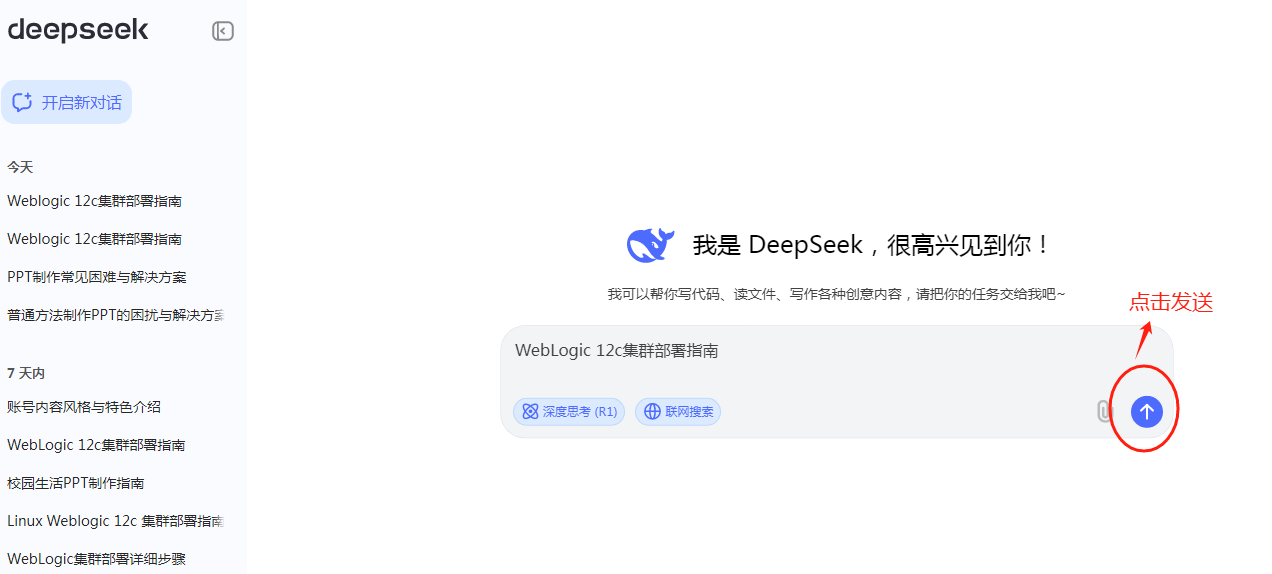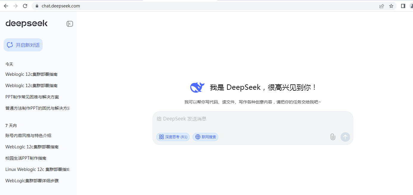 第一步通过DeepSeek网页版地址:https://chat.deepseek.com/打开聊天对话框,输入提示词,也就是你的需求。