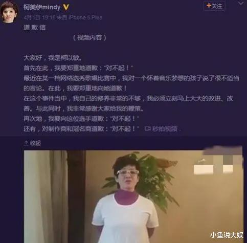 随着舆论发酵越来越大,柯以敏最终被迫道歉,拍了一个流眼泪的道歉视频,并发布在自己的个人社交平台上,企图以此平息众人的怒火。