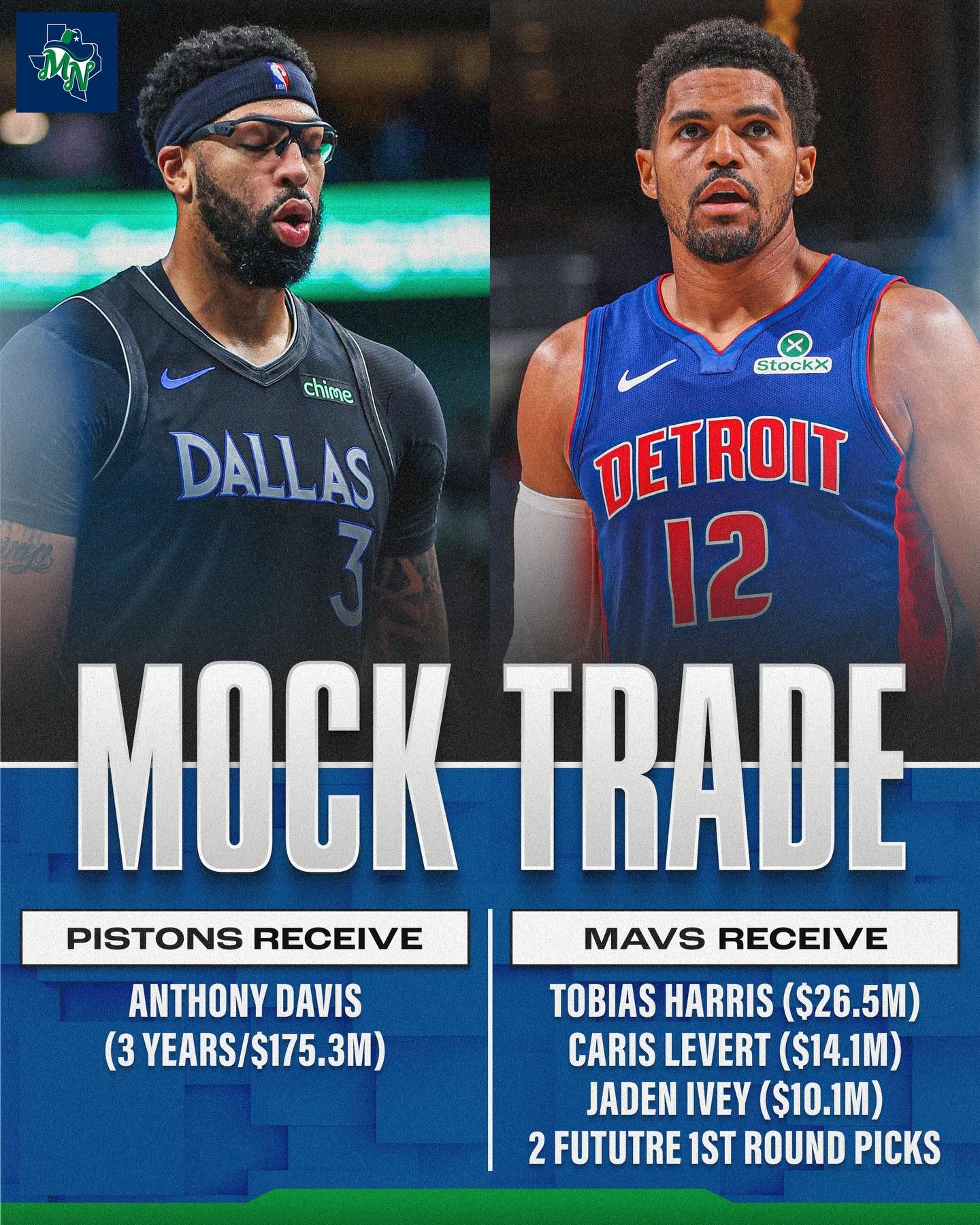 与此同时,另一位名记Evan Sidery也对此事进行了报道。他指出,东部头号种子活塞队将会追求浓眉,他们拥有与独行侠达成交易所需的资产。Evan Sidery表示,活塞可以拿出一套以艾维为核心、再加上托拜亚斯-哈里斯的2660万美元到期合同、搭配一名角色球员以及选秀资产的交易方案。