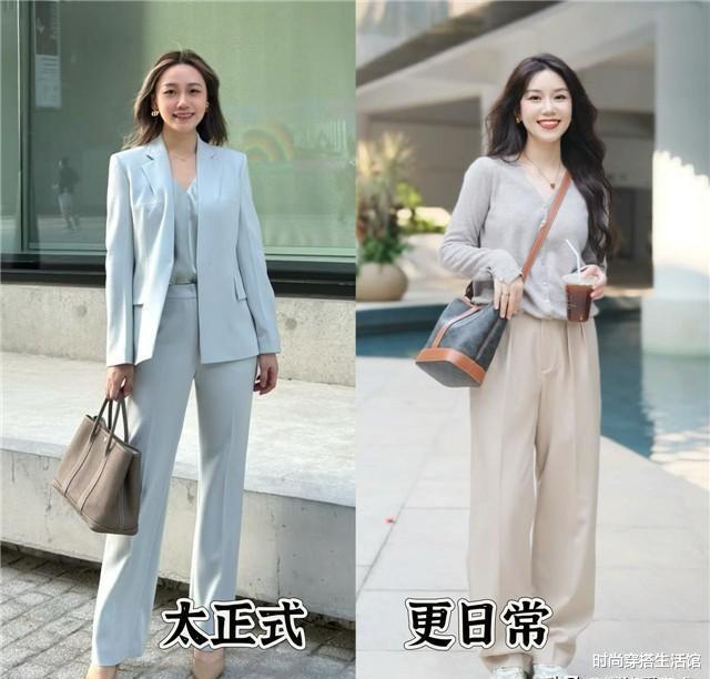 在考虑日常穿着时,选择西裤与高跟鞋的搭配可能给人过于正式的感觉,不太适合日常生活的轻松氛围。所以,我更推荐选择更休闲且舒适的穿搭组合,西裤和运动鞋组合既保留了正式感,又增添了几分休闲气息,更符合日常生活的节奏。