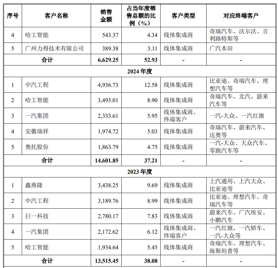 易思维前五大客户包括中汽工程、巨一科技、一汽集团、广州力得技术、安徽瑞祥、奥托股份、哈工智能、鑫燕隆等,终端客户均为国内外汽车整机企业。
