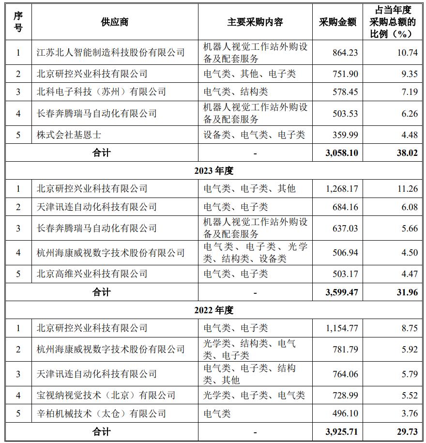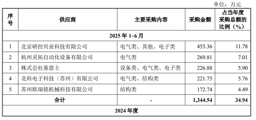 报告期内,主要供应商大部分为国内厂商,包括研控兴业、灵拓自动化、北科电子、欧瑞铭机械、北人智能制造、奔腾瑞马自动化、海康威视、高维兴业等。