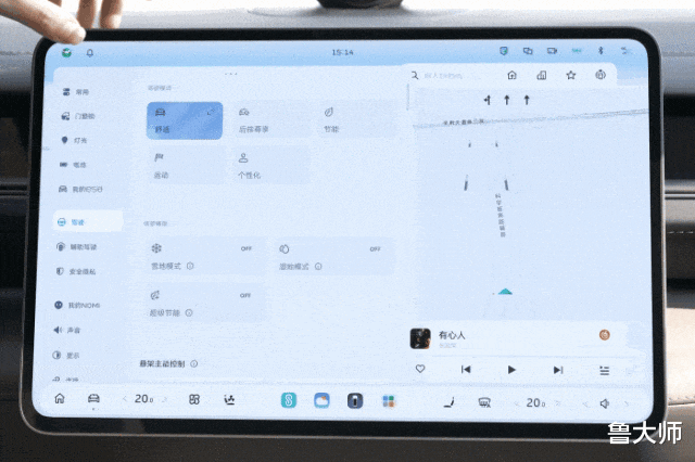 先说最直接的感受。ES8的车机属于你一上车就能马上适应的类型。15.6英寸大屏配合骁龙8295P,画面清晰、亮度够用,界面风格是干净克制的设计,不会把你淹没在一堆功能里,该看的信息都在顺手的位置。