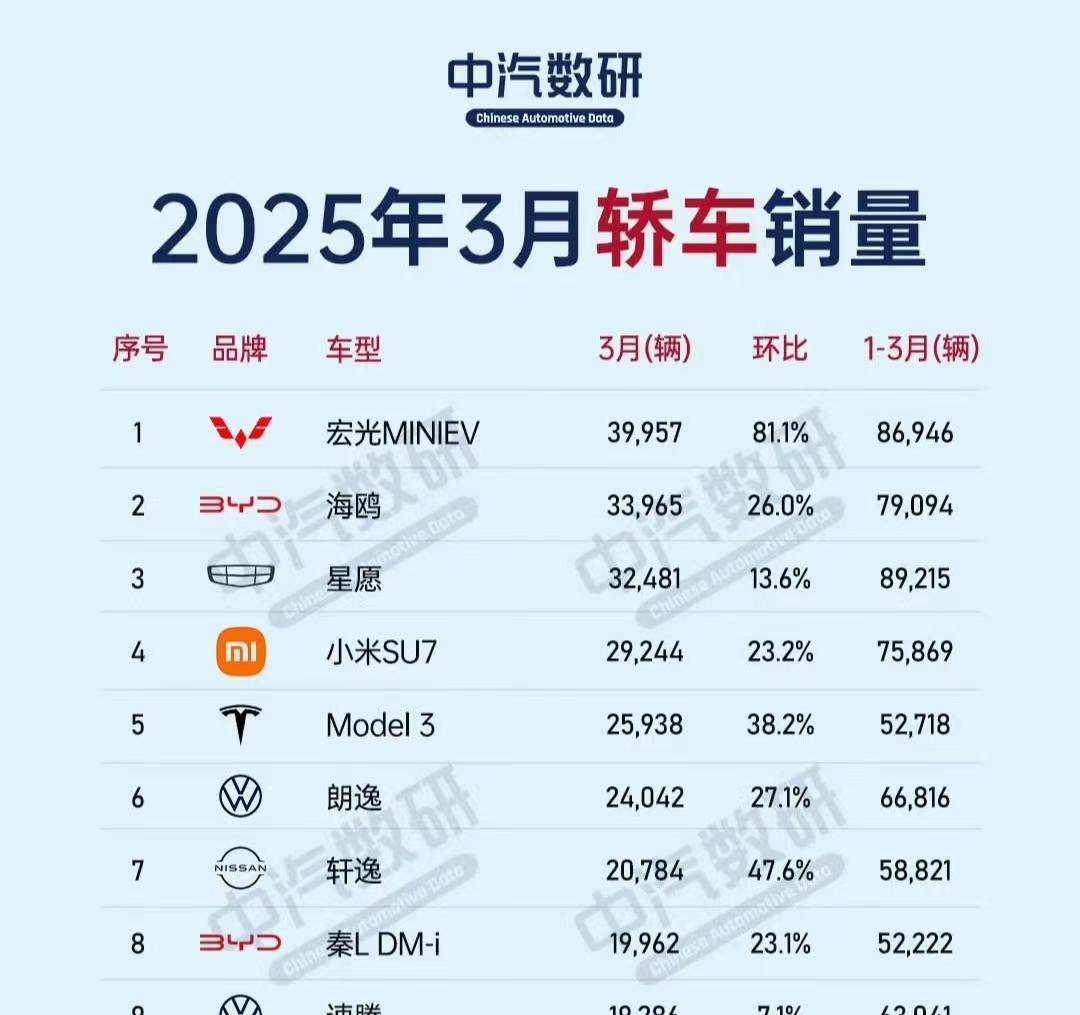 在3月份的汽车销量排行榜上,一个名字引起了大家的关注,那就是小米SU7。这款车不仅在销量上以惊人的29244辆的成绩击败了特斯拉的Model 3,甚至将长期占据销售榜首的燃油车轩逸、朗逸等“老炮”瞬间拍到了沙滩上。这一现象的背后究竟隐藏了什么?是小米的品牌效应还是消费者购买心理的变化?我们不禁要问,这样的成功背后,汽车行业又将面临怎样的变革?