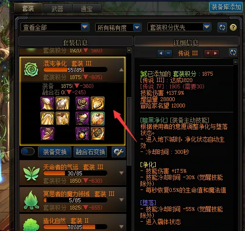 5件防具通宝融合石,加上太初积分效果,CD冷却已经足够,对“混沌净化”的冲击很大。