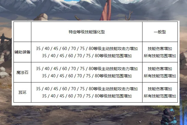 而特殊装备通宝融合石,增加的是35/40/45/60/70/75/80级主动技能攻击力和范围,也没有加觉醒的。
