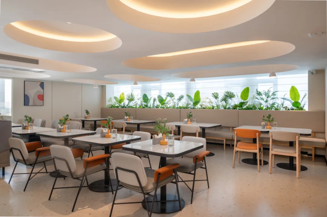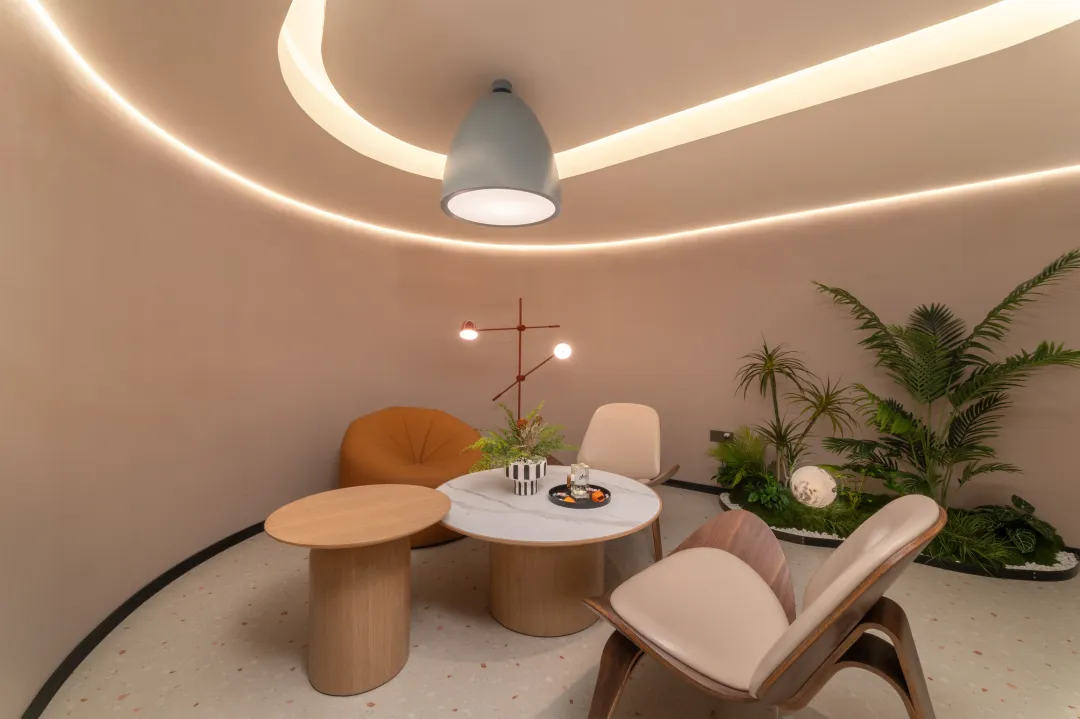空间布局上,酒店通过巧妙的隔断,将餐厅、前台、等候区与轻办公区有机融合,在保持舒适动线的同时,赋予空间更多可能性。