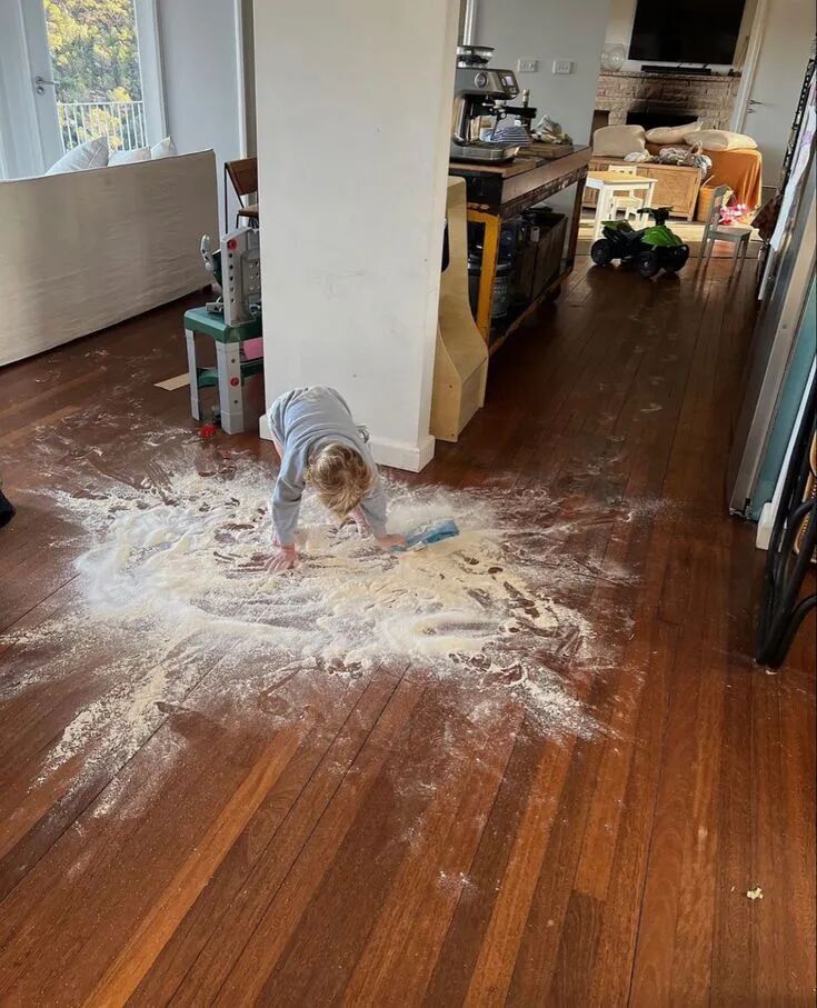 9.乍一看还以为家里多了两尊雕像呢,原来是孩子用油漆洗澡,真是太难为他们家长了...