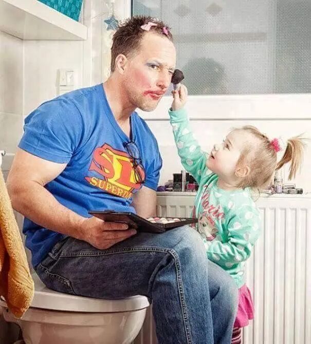 15.女儿给爸爸化妆,爸爸一脸生无可恋的样子,亲生的没办法。