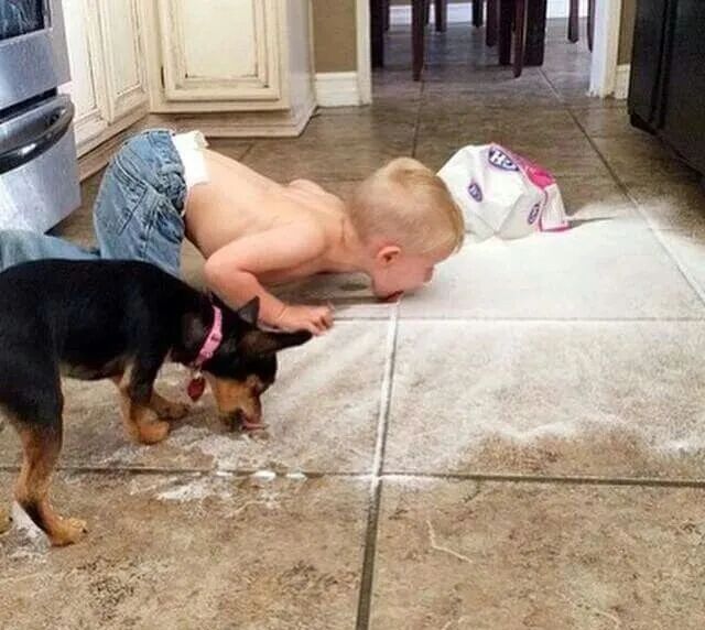 10.小孩偷吃现场,狗子被迫参与,不得不说这狗子的力气真是大!
