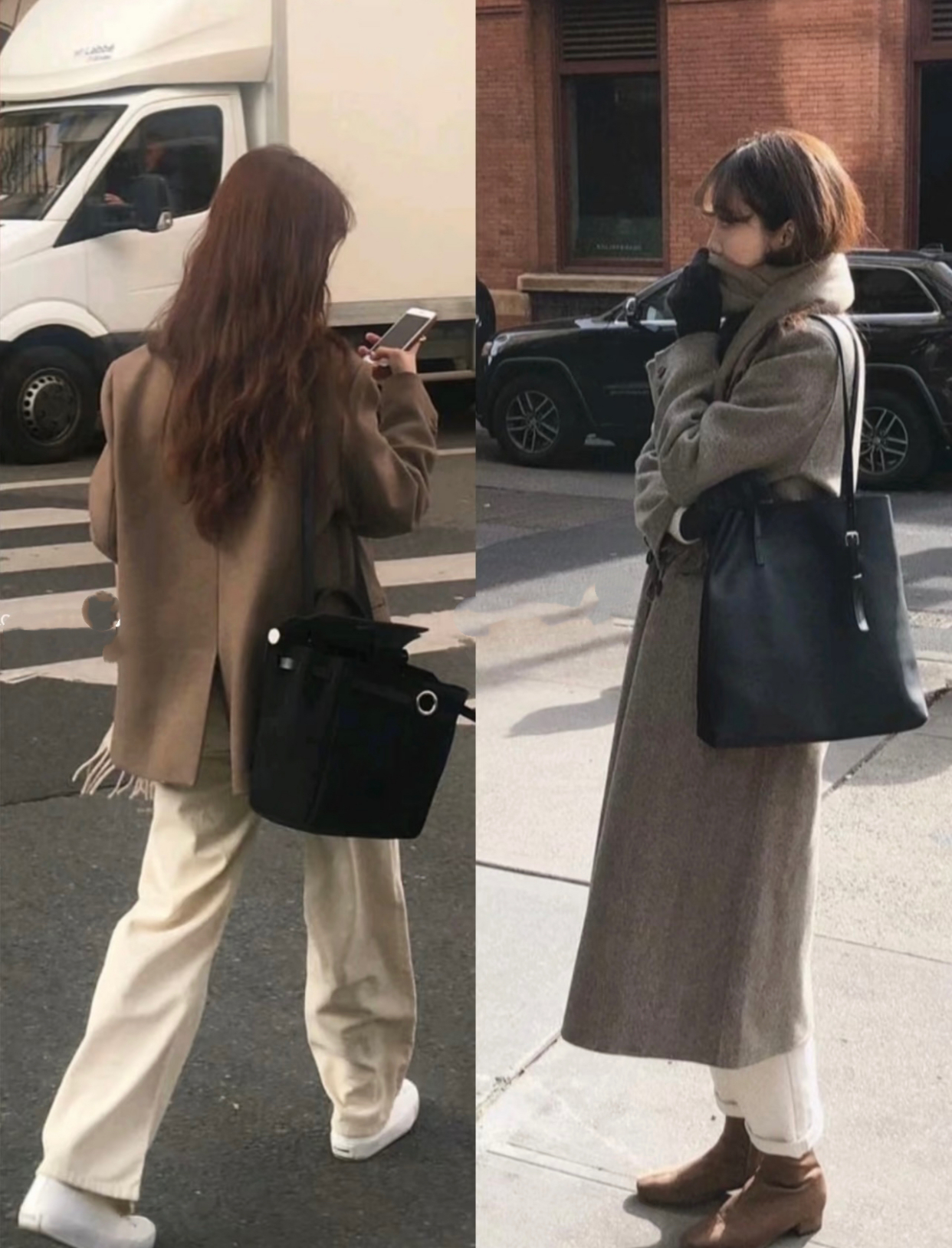 一条白色裤子看似与冬季格格不入,上身却很惊艳!尤其是穿长款大衣时,一条白色裤子可以带来轻盈感。比如驼色大衣与小白裤的组合,用白中和驼色的成熟,更知性温柔。尖头短靴可以提升利落感增加女人味,而且颜色与上衣呼应,有着拉长显高的效果,很适合熟龄姐妹的通勤休闲,穿衣更高级!看韩女街拍我悟了:大衣不配打底裤,太土!这么穿更气质!