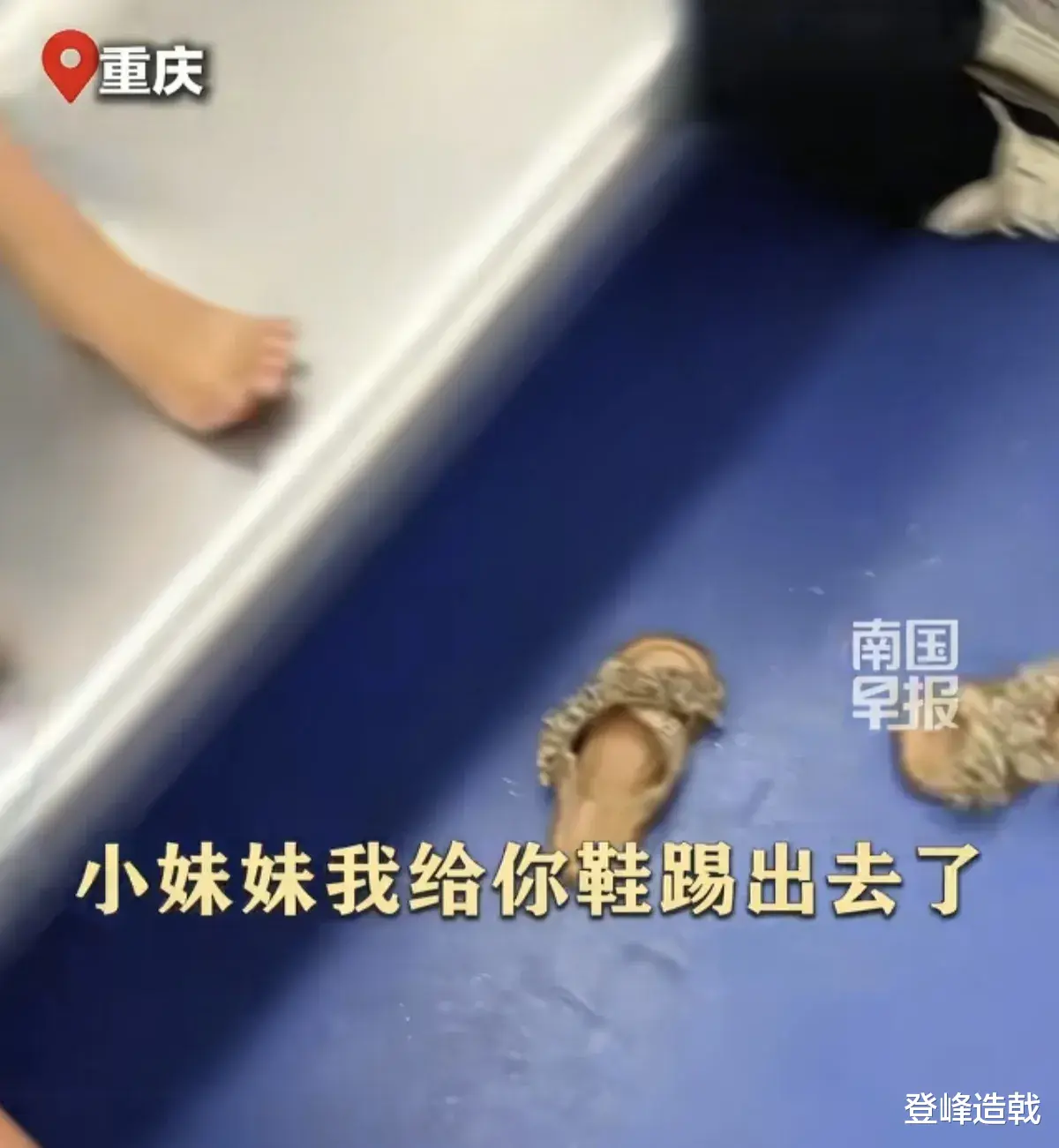 小女孩起初没反应过来,后来意识到小伙的意思后。没有赶紧从座椅上下来穿鞋,反倒呼喊起了妈妈。