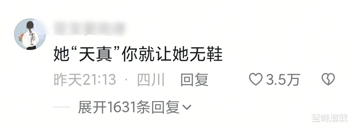 更有网友调侃,“她天真,你就让她‘无鞋’!”