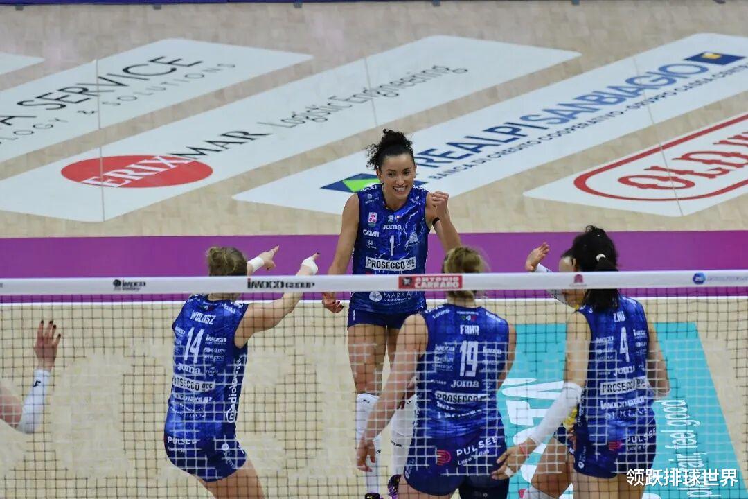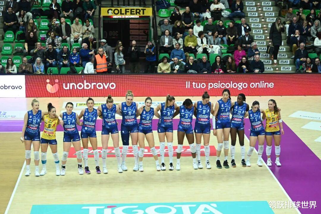 北京时间1月18日,在意大利女排甲级联赛第20轮的焦点大战中,豪门劲旅科内利亚诺女排坐镇主场,以3-0(25-20、25-23、25-15)完胜来访的贝加莫女排,目前以19胜1负积54分继续巩固联赛榜首。