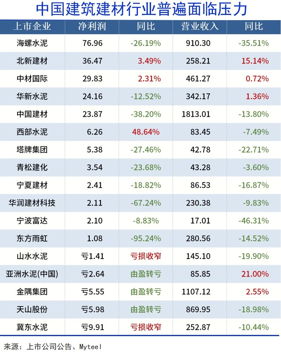 建筑业开工项目数量的减少,直接导致了相关企业营收和利润的下降,无论是钢铁、水泥、防水材料,还是混凝土、玻璃纤维等领域,行业普遍面临需求疲软和价格下降的困境。