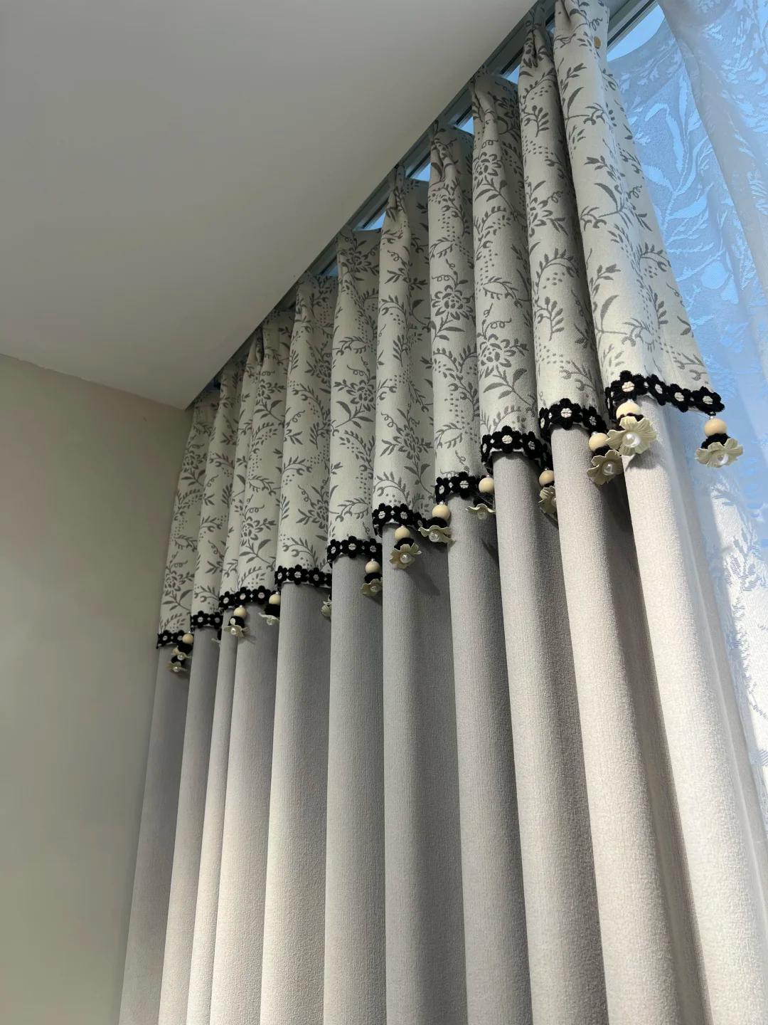 那个窗幔除了积灰,基本没有实际的用途。现在的窗帘设计都趋向于简约,做一层简单的窗帘盒,搭配一层纱帘和一层遮光帘就完全足够了。