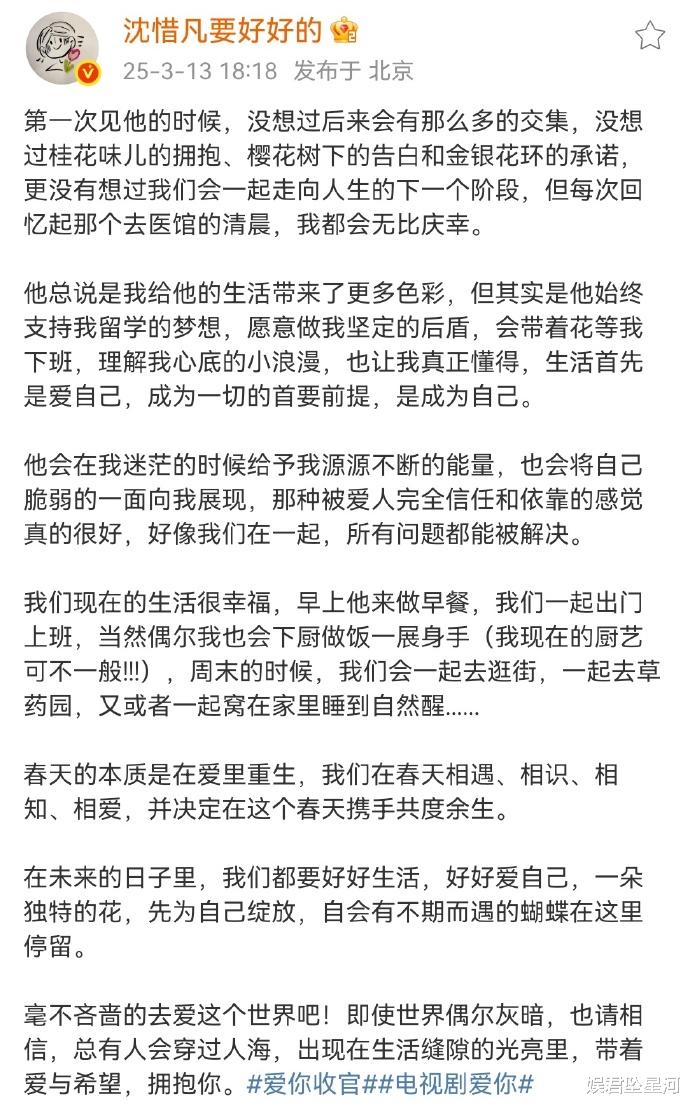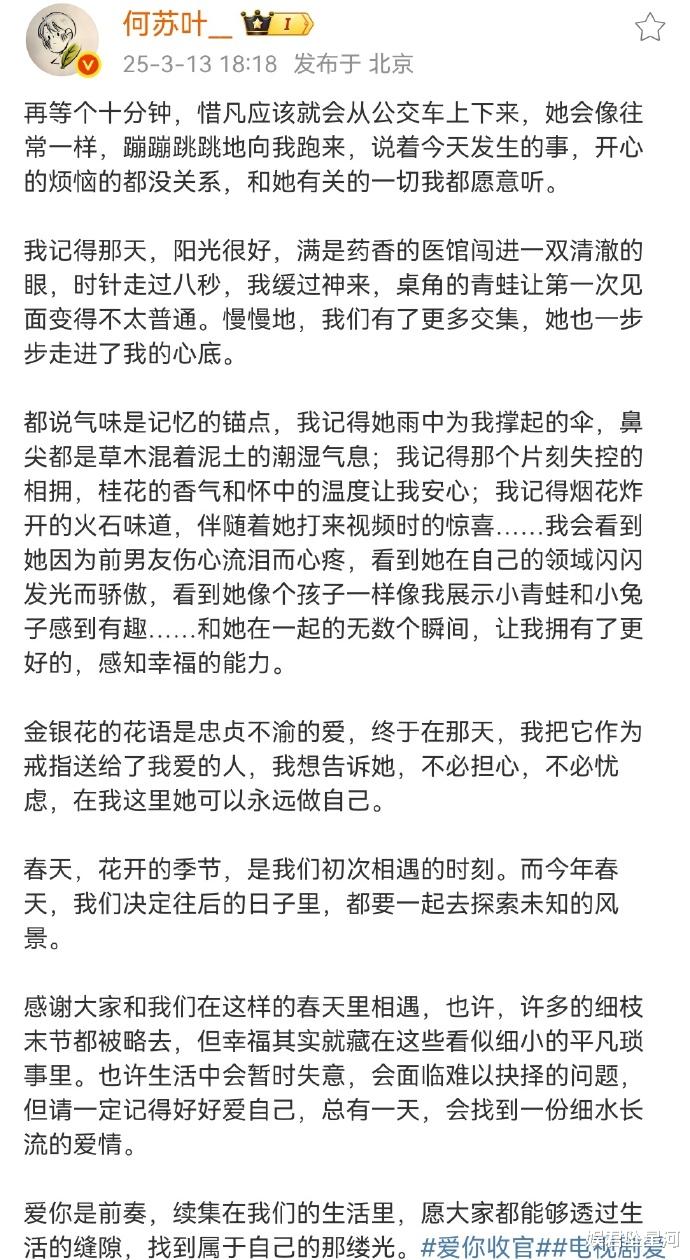 但张凌赫也说了,婚后生活存在在每个剧粉现实生活中,去遇见那些美好。希望在某个平行世界里,何苏叶和沈惜凡能一直漫步在岁月的长河中,续写属于他们的美好!