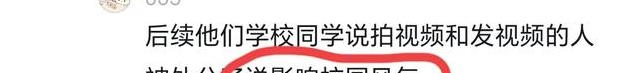随后有疑似该校学生透露,学校在找拍视频的人,拍摄视频和传播视频的学生,都受到了处分,疑似被开除了。