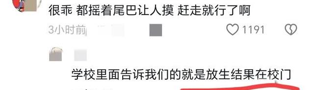 有的网友说:狗狗很乖,都摇着尾巴让人摸他,并且学校告诉学生的是放生,结果却在校门口被打死了,言行不一啊。
