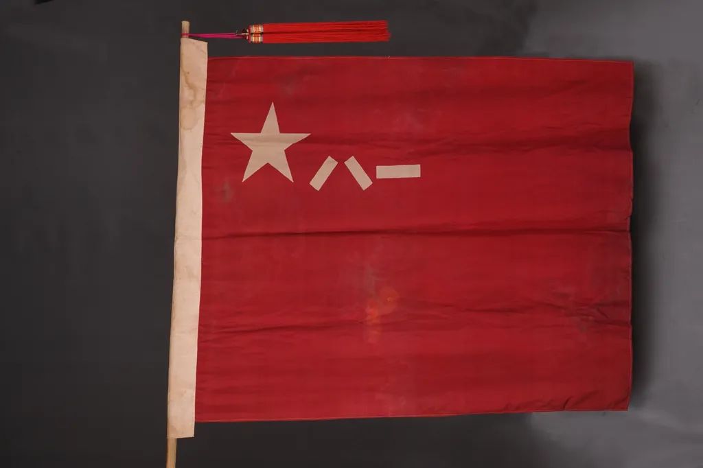 这面收藏在贵州省博物馆内的军旗,高1米25,宽1米46,质地为红绸,军旗左上方为米黄色五角星,代表着中国共产党。五角星右侧为米黄色“八一”二字,代表中国共产党在1927年8月1日打响南昌起义第一枪的时间。组合起来,表明了中国人民解放军自南昌起义以来,经过艰苦卓绝的长期斗争,在党的领导下取得了中国革命的伟大胜利。旗面左边为白色旗杆套,另外有红色丝线流苏一对,挂于旗杆顶部。