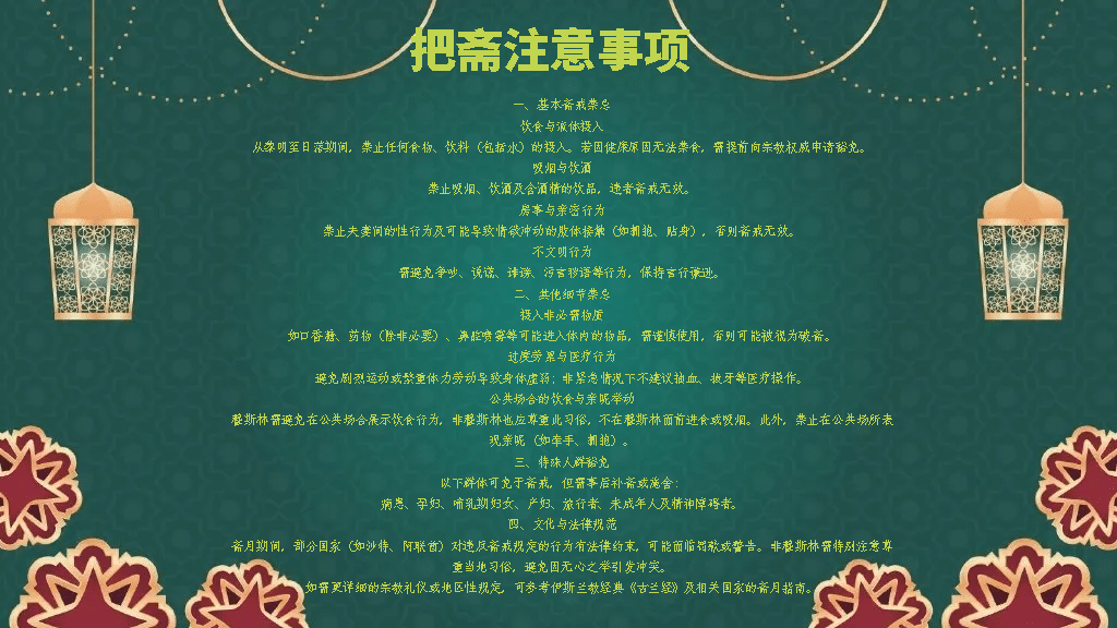 四、其他注意事项开斋与封斋时间:以新月出现为准,不同地区可能因观测结果略有差异。