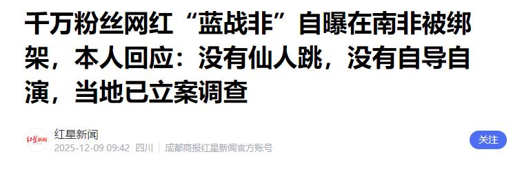 单平台坐拥2600万粉丝的网红“蓝战非”,居然在南非被绑了!