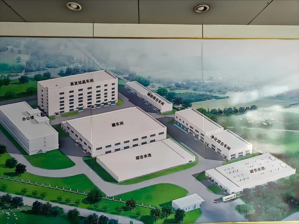 该项目占地面积达 1.8 万平方米,建筑面积为 1.5 万平方米,设计处理能力为 10000m³/d。其采用“预处理+三级反渗透膜浓缩+蒸发结晶”工艺进行处理,处理后的水用于为附近的热电厂供应循环冷却水,或者进行外排。