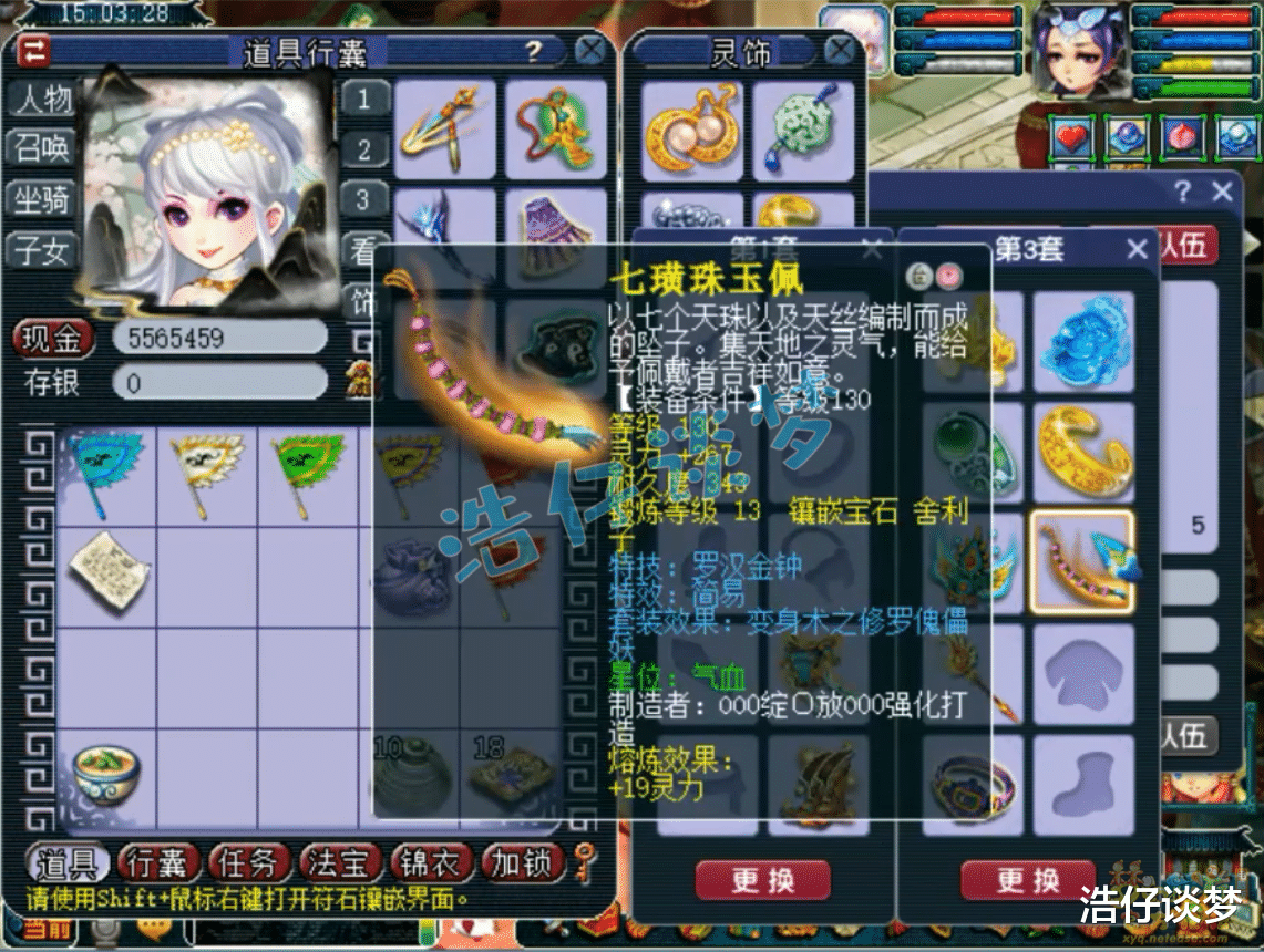 130级带罗汉金钟的简易修罗傀儡妖套项链,熔炼后初灵208,打了13锻舍利子。