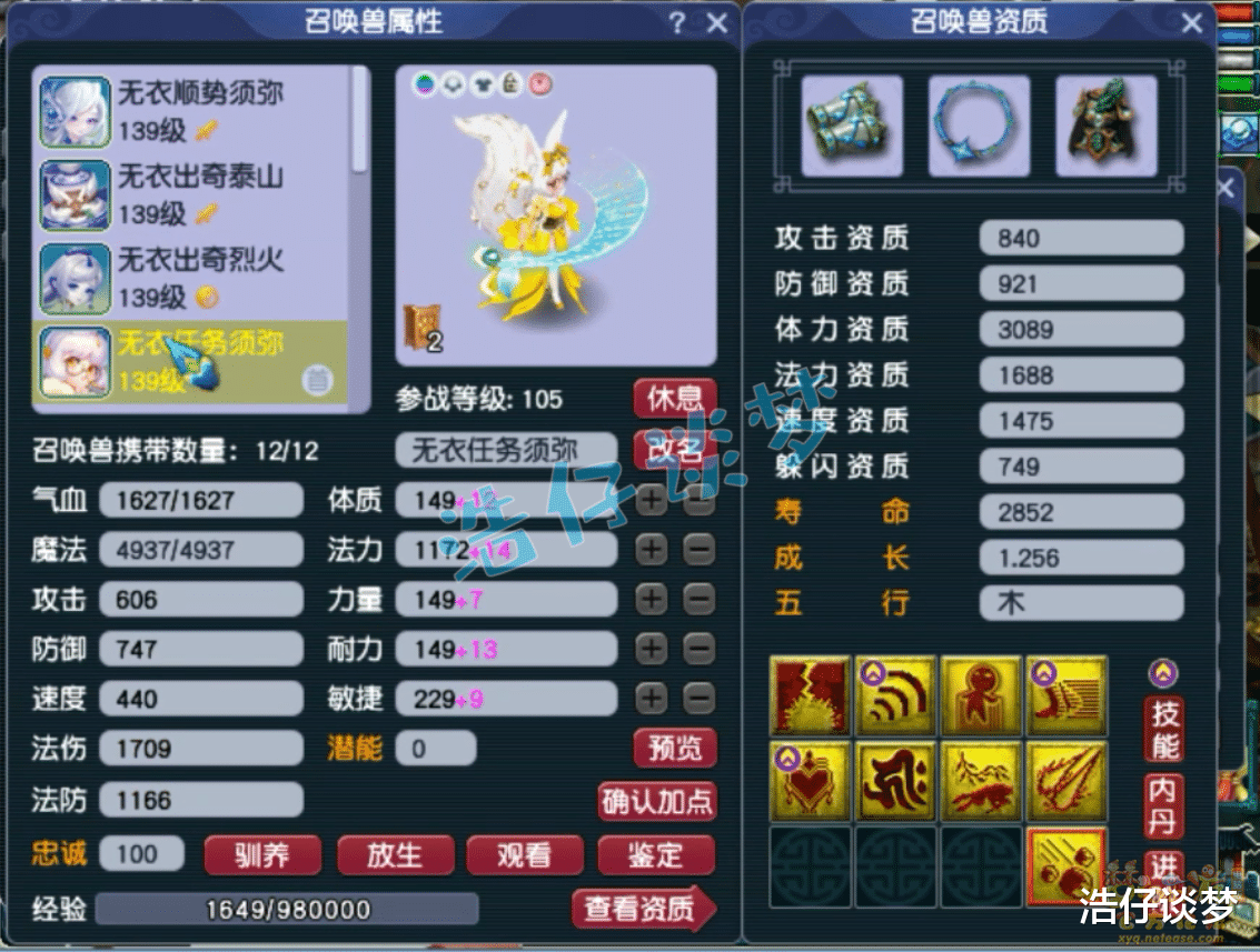 9技能血攻善恶画魂,攻资和成长非常极限,赐福了3个超级技能。