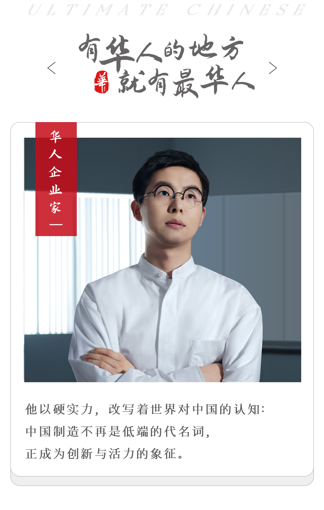 他以硬实力,改写着世界对中国的认知:中国制造不再是低端的代名词,正成为创新与活力的象征。