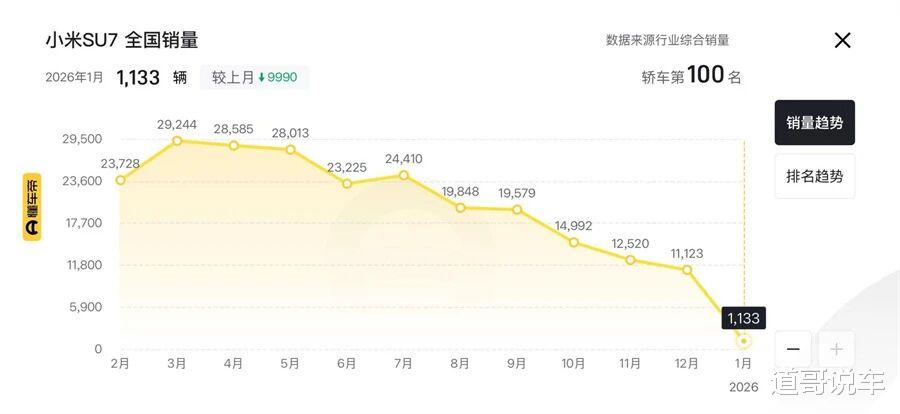 诚然,无任何直接证据能够证明小米相关事故全由车辆背锅,但市场只会躲开“有毒的蛇”。懂车帝销量排行榜数据显示,2025年,小米SU7的销量整体呈下滑趋势,而在数次舆情中置身事外的小米YU7,销量则呈上涨趋势。当然,这可能与两款车新、旧之别有关,但这未必是全部原因。