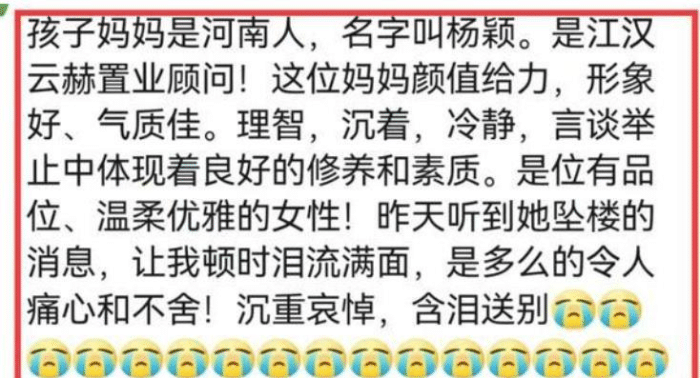 这让本就悲痛不已的孩子母亲杨女士更加绝望,此时,网上还时不时出现“杨女士为了讹钱、打扮精致”的舆论,6月2日,又一起悲剧发生,杨女士不堪压力,从24楼纵身跳下。