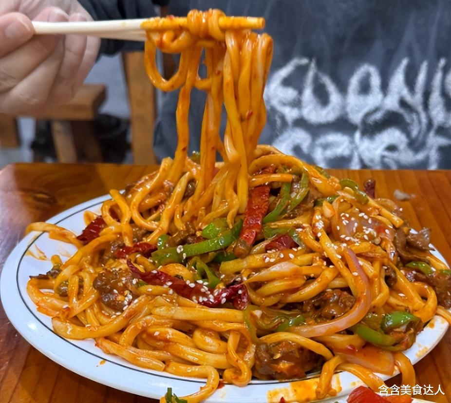 富平炒拉条子以传统做法著称,不放番茄酱和孜然,采用纯辣子干炒,突出面条的劲道与香辣风味,口感干香浓郁,深受当地人喜爱。其特色在于手工拉制面条与简单调料的搭配,更能体现面本身的麦香与火候功夫。不少食客认为这种做法比添加番茄酱的版本更显地道,是陕西街头夜市中极具代表性的美食。