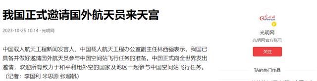 光明网——我国正式邀请国外航天员来天宫