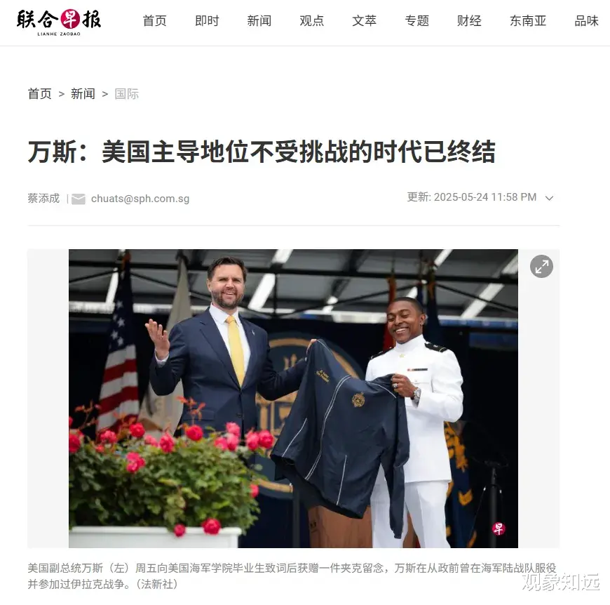 万斯这番讲话,与其说是一次对军校毕业生的演讲,倒不如说是一份美国在“后霸权时代”的战略白皮书: