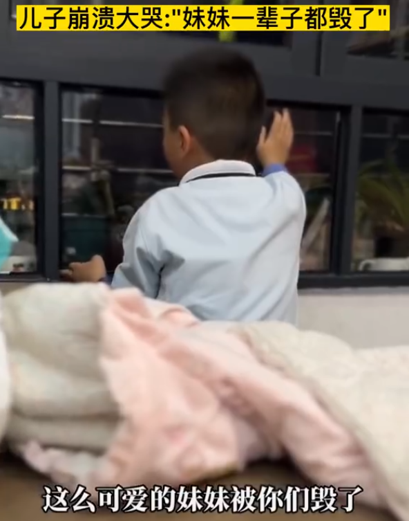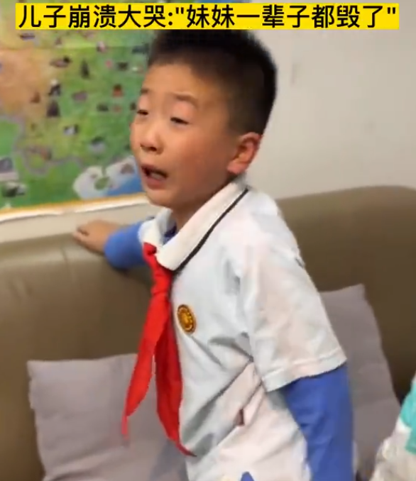 视频显示,一名小男孩带着哭腔对着镜头控诉:“你毁了她的一生你懂吗,你都不惭愧吗?你毁了她的一生!”随后,小男孩又背对着镜头一边大哭一边吐槽:“这么可爱的妹妹,好不容易才有的妹妹,然后你们就取了个这么土的名字,你们毁了她的一生!以后这样的妹妹,我怎么当哥哥,这么可爱的妹妹,我这么喜欢的妹妹,竟然有一个这么土的名字,呜呜呜……”