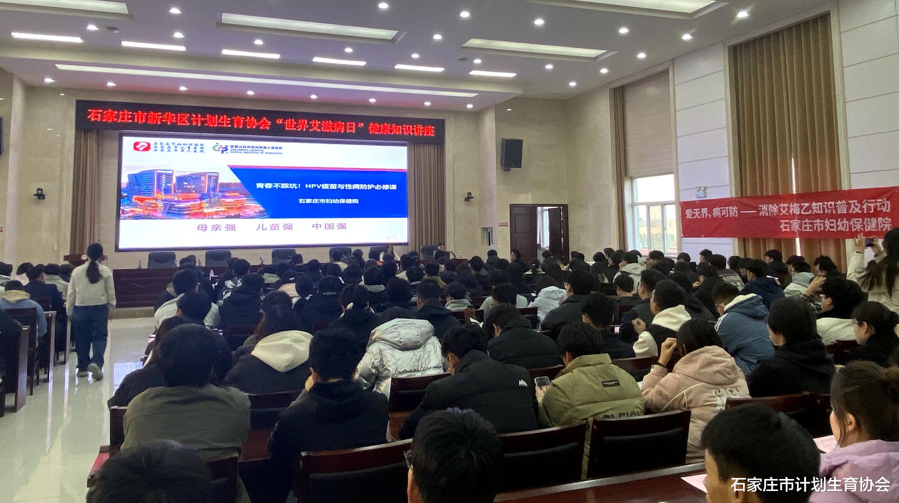 新华区计生协联合东焦街道办事处在河北轨道运输职业技术学院举办“青春健康知识进校园”——“世界艾滋病日”健康知识讲座,200余名师生到场聆听。活动邀请市妇幼保健院康伟明教授从艾滋病的传播途径、流行现状与科学预防措施三个方面,为大家深入讲解如何有效阻断病毒传播、日常交往中的常见认识误区等内容,通过权威数据和典型案例,引导同学们树立“自身健康第一责任人”的理念。讲座内容直面关键问题,让学生深刻认识到艾滋病并非遥远,掌握科学防护知识、明确行为边界是迈向成熟的重要一步。