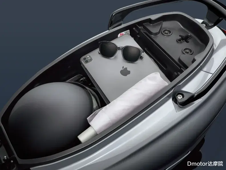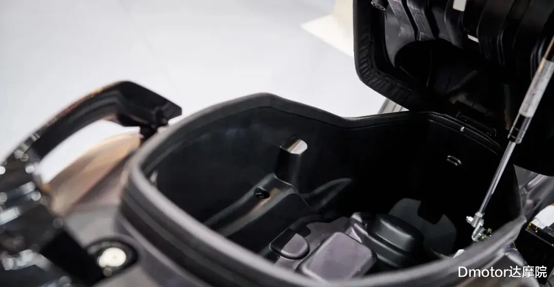 值得一提的是,作为平踏车型,全新飞度Fiddle 150脚踏位置可以容纳20L左右的行李箱;座桶空间也可以容纳3/4头盔+一些日常用品,实用性还算不错。