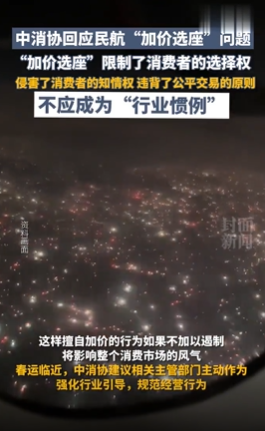 中国消费者协会(简称中消协)针对民航业的“加价选座”现象进行了表态,明确表示这种做法不应成为行业惯例。这一立场反映了对消费者权益保护的关注以及对市场公平性的维护。