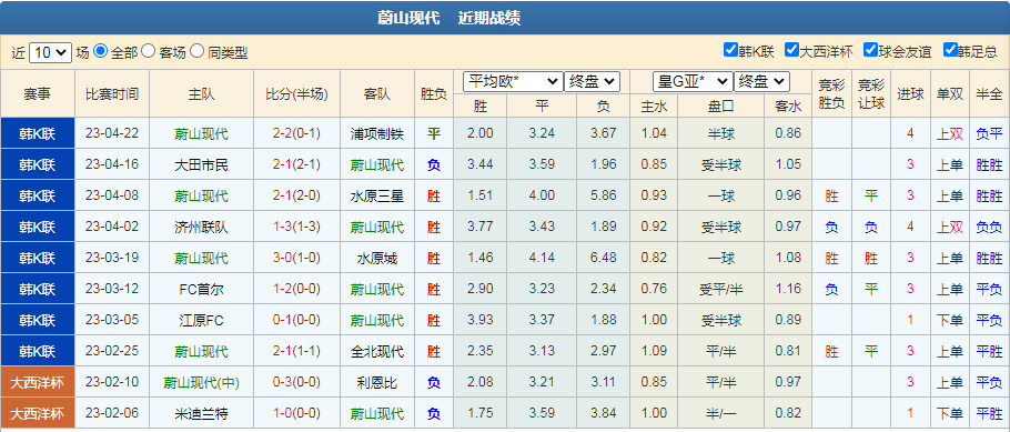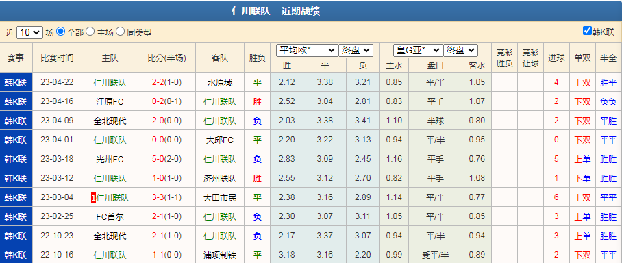 今天给大家带来一场韩K联赛:仁川联VS蔚山现代