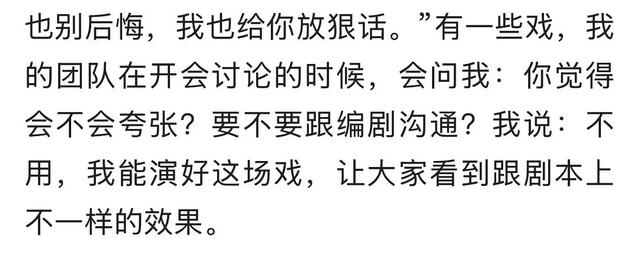 “我能演好,让大家看到跟剧本不一样的效果”所以有问题的剧情编剧不用改,演员的表演直接合理化问题,我的娘嘞,什么叫演员,这才是演员。