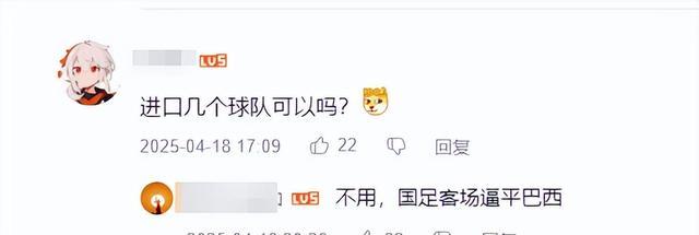 还有网友则提到了足球,毕竟巴西足球是世界上公认的强队,如果真的和巴西展开全面合作的话,进口几个队员和教练也不是不可以的。