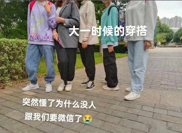 看到大一的时候,穿着还是土里土气的高中生模样,瞬间没有恋爱的欲望了吧。只能说,婴儿肥的稚嫩展现的一览无遗。这丑衣服把身体的缺点暴露的淋漓尽致。