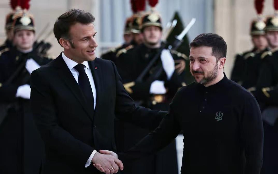 法国总统马克龙召集欧洲国家再次就乌克兰危机问题举行会谈,欧洲国家明确表示不会取消对俄罗斯的制裁,欧洲国家考虑出兵乌克兰。俄美大国在沙特的大桌上举行会谈,马克龙带领欧洲国家在巴黎的小孩桌上进行密集会谈,试图影响和牵制俄美两个政治大人的和平谈判进程。