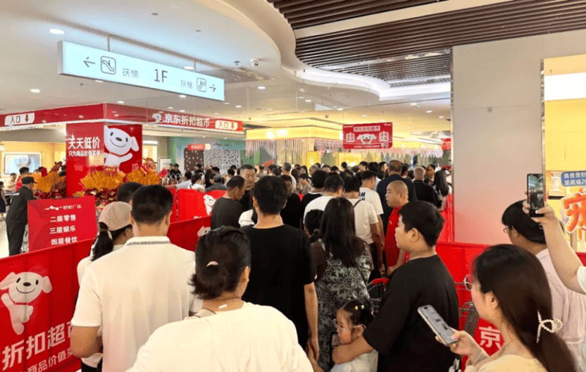 据多家媒体报道,这座在河北涿州开业的京东折扣超市全国首店。营业首个周末就接待顾客超10万人,一度引发限流,更在开业当日带动商场(君悦广场)整体客流量飙升至平日周末的四倍以上。