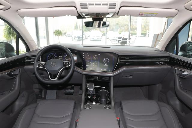 来到车内,途锐作为进口车型,内饰也是保持了原汁原味的设计。新款车型整体布局和老款变化并不大,这套内饰个人还是比较看好的,尤其是在当下全都是悬浮大屏的趋势下,途锐的两块嵌入式屏幕看起来也很有档次,中间是一块15.05英寸的触控屏,左侧则是全液晶仪表。座椅方面,采用Vienna真皮材质,前排具备18项电动调节,头枕也有四项调节。虽然内饰在豪华感以及科技感方面,可能和同级车型有一定的差距,不过档次感营造得比较到位。